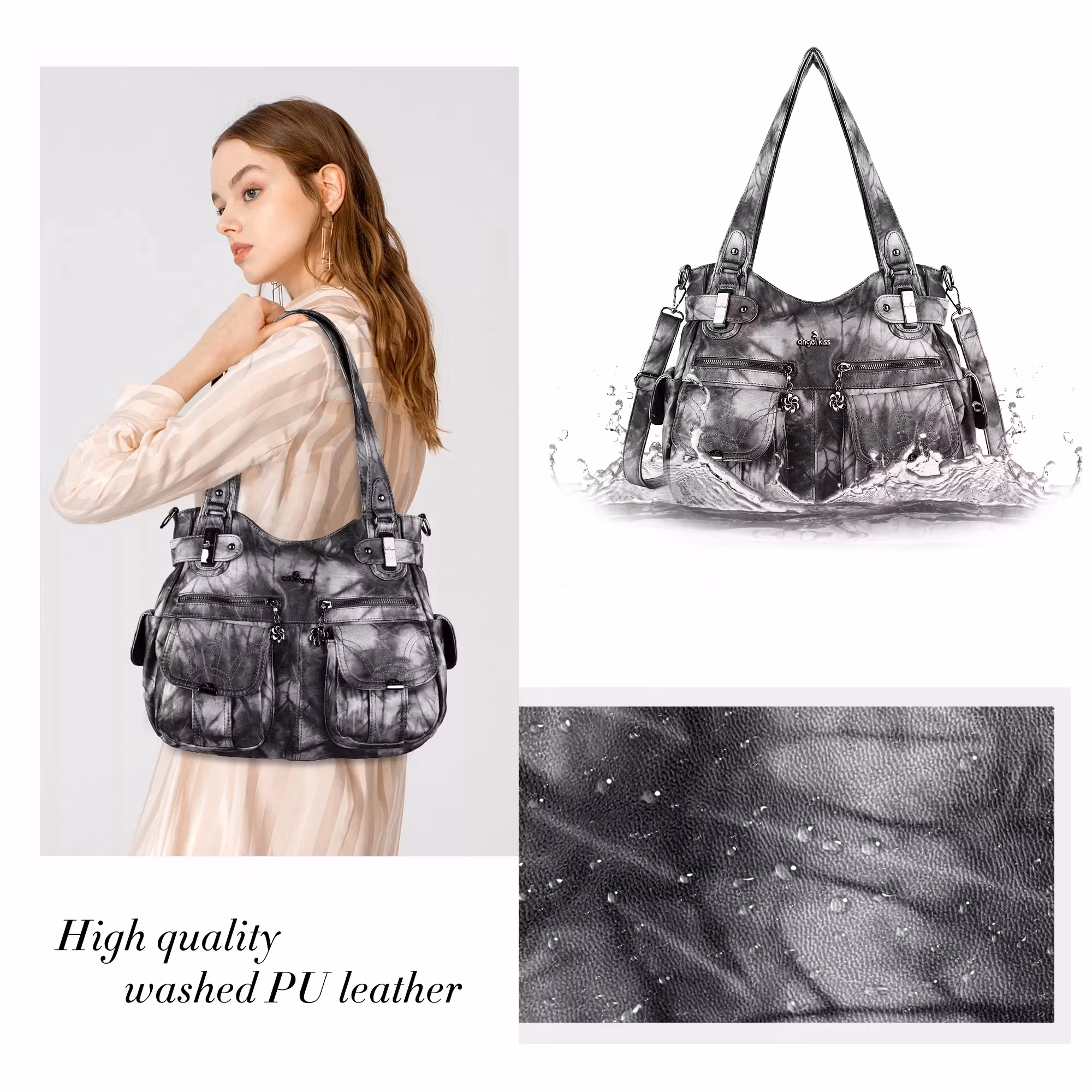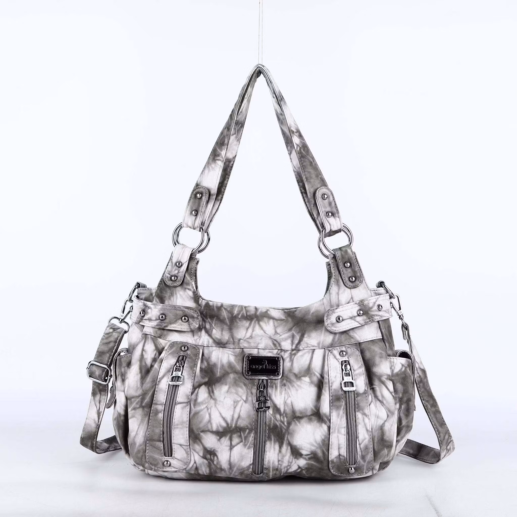 Exklusiv och snygg handväska i grå och vit med modern design. Väskan har flera praktiska förvaringsfack för exempelvis mobil, pass och plånbok. Justerbart axelband som även går att ta bort. Hög kvalité och unik design som du bara hittar hos oss. Väskan finns i en strikt begränsad upplaga så passa på medan det finns några kvar. Väskan har stor kapacitet och det är inga problem att få rum med exempelvis surfplattan.