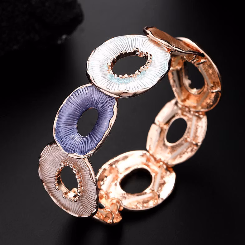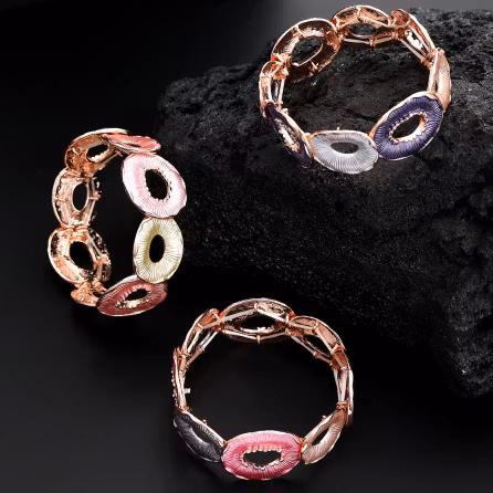 Letar du efter ett armband med en stor portion charm och unik design? Då ska du slänga ett extra öga på vår senaste serie emaljerade smycken och inte minst vårt armband Hope. Designen är läcker och de olika ovala ringarna binder samman armbandet på ett ypperligt sätt. Jordiga toner av brunt, blått och krämigt vitt knyts samman och ramas in av roseguldet. Vårt armband Hope har ett slitstark elastisk gummitråd som gör att den passar de flesta handleder. Våra smycken är en uppskattad present till någon du tycker om. Alla våra produkter levereras i en smyckespåse eller presentförpackning - redo att ges bort.