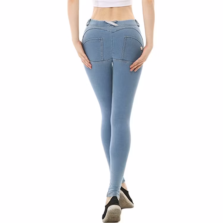 Denim tights med smal fotvidd och låg midja. Formar sig efter kroppen vid användning så inledningsvis ganska tajta, gå gärna upp minst en storlek och gillar du inte att de smiter åt så välj två nummer. Ger rumpan ett rejält lyft med rundad mjuk form. Tightsen har knapp i midjan och påminner verkligen om ett par vanliga denimjeans. Passar lika bra till träningen som till vardags. Våra Denim tights finns just nu i två olika färger svart samt vår denimblå. Tänk dock på att de är små i storlek. Vår logga StylebyJNY ca 4 cm på vänster lår.