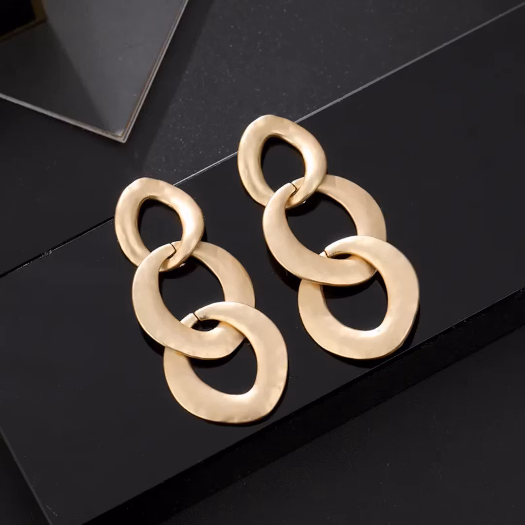 Det som verkligen gör Lovisa-örhänget unikt är dess design med tre sammanlänkade cirklar. Dessa cirklar symboliserar evighet och enhet, och de ger en subtil men djärv look som kommer att fånga allas uppmärksamhet. Perfekt för den som vill ha en modern twist på klassisk elegans.