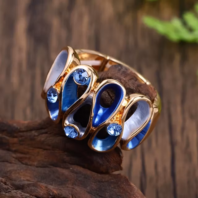 Upptäck en ring som utstrålar elegans och kreativitet. Vår Ring Kreativ Cooper Joy är prydd med strasstenar i jordnära toner, vilket ger den en naturlig men ändå lyxig känsla.